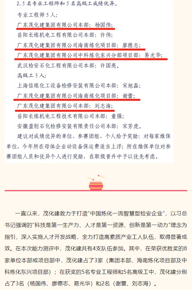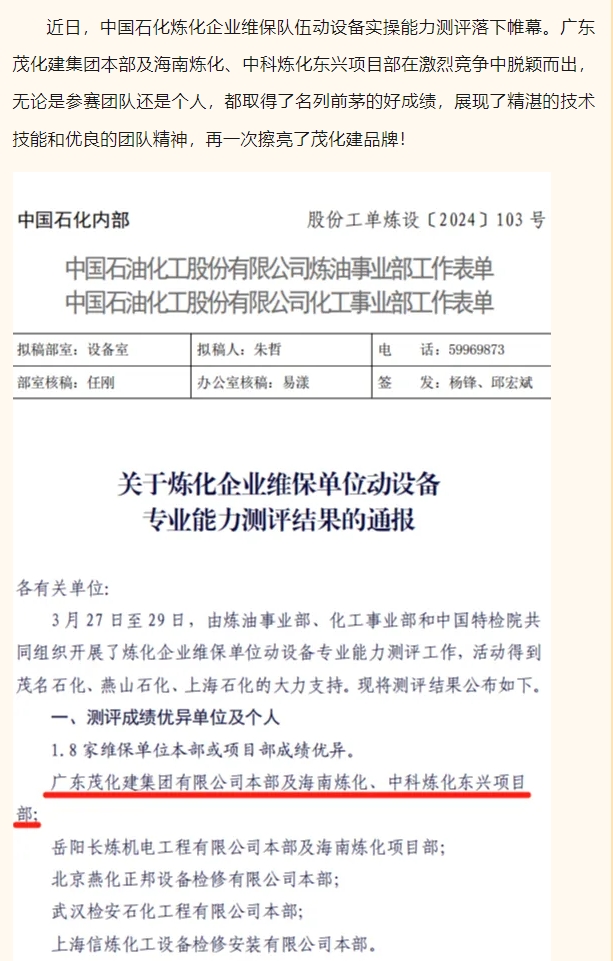祝賀!茂化建在中石化煉化企業(yè)維保隊(duì)伍動(dòng)設(shè)備實(shí)操能力測(cè)評(píng)中成績(jī)優(yōu)異,名列前茅
