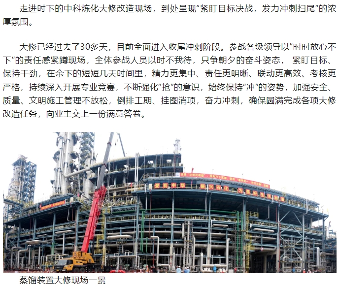 緊盯目標(biāo)決戰(zhàn) 奮力沖刺掃尾——走馬2024年中科煉化裝置大修改造大會戰(zhàn)現(xiàn)場
