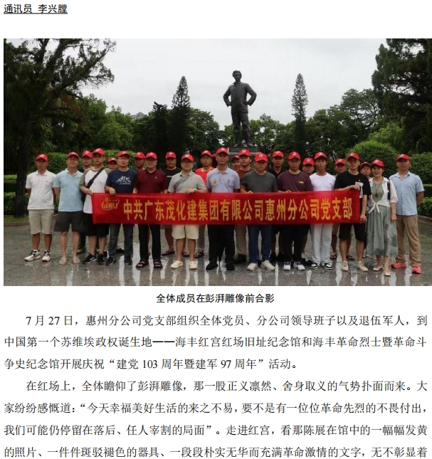 惠州分公司黨支部開展慶?!敖h103周年暨建軍97周年”活動(dòng)