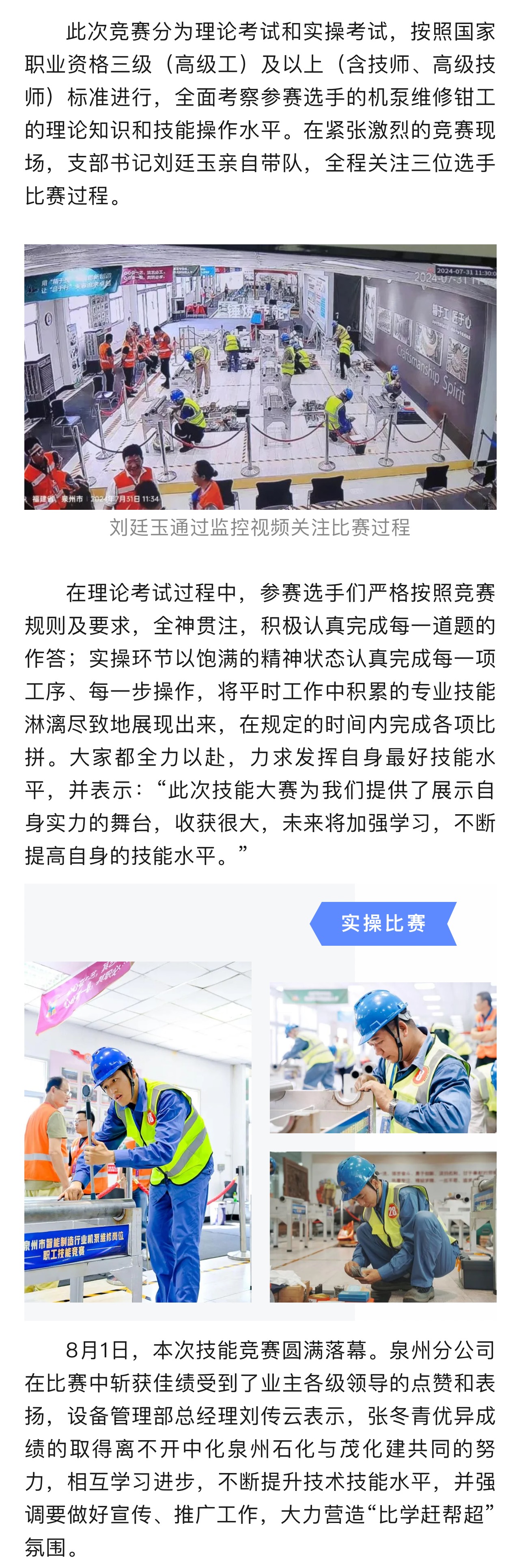 泉州分公司在泉州市維修機(jī)泵技能競(jìng)賽創(chuàng)佳績(jī)