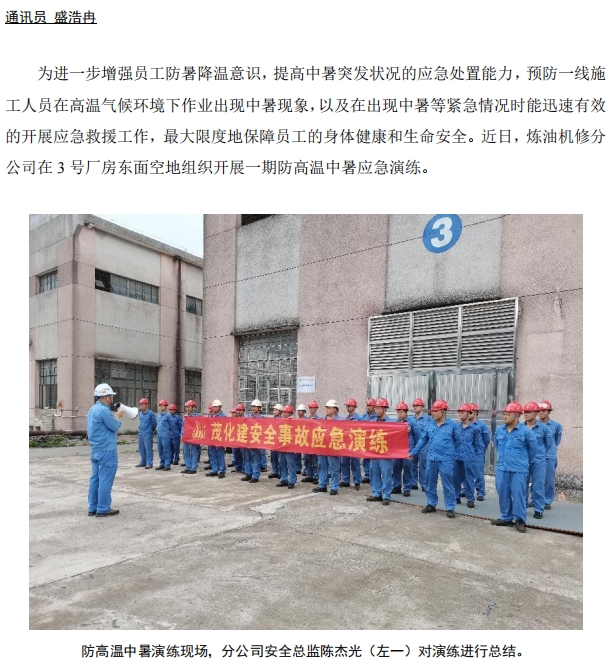 煉油機(jī)修開(kāi)展防高溫中暑應(yīng)急演練