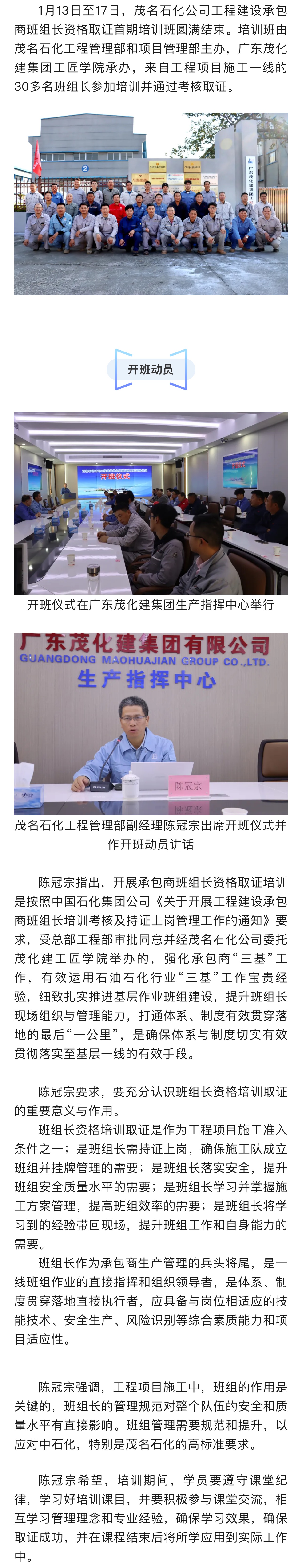 茂名石化工程建設承包商班組長資格取證首期培訓班圓滿結束