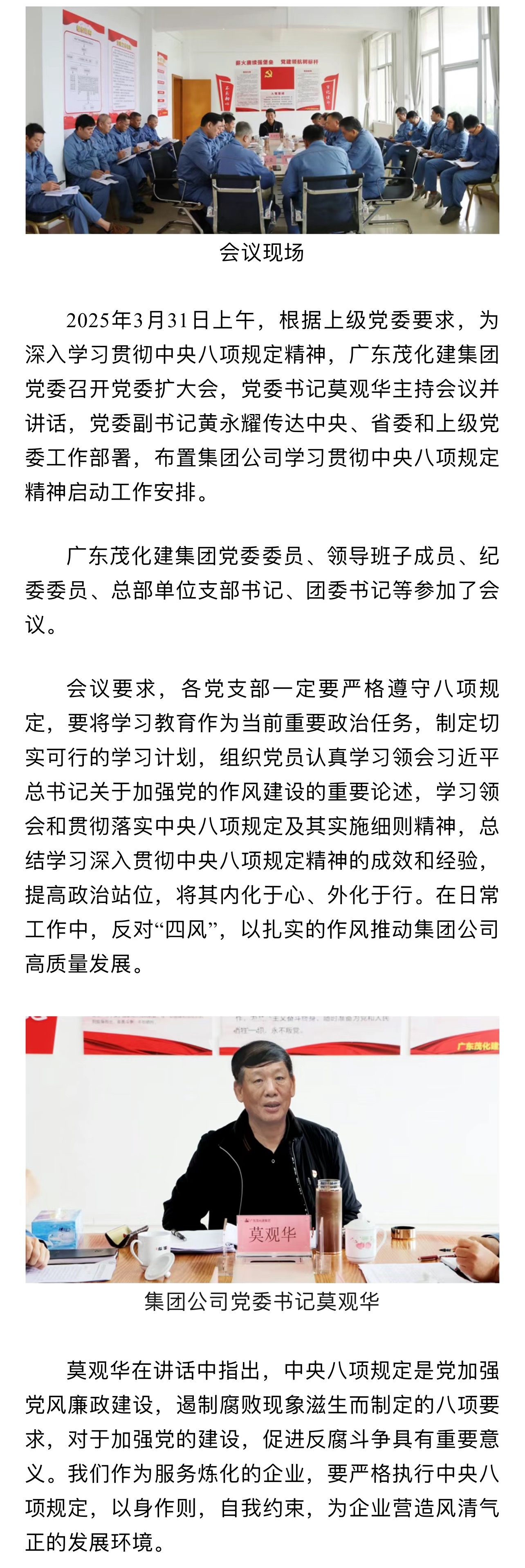 廣東茂化建集團黨委召開貫徹中央八項規(guī)定精神學(xué)習(xí)教育部署啟動會