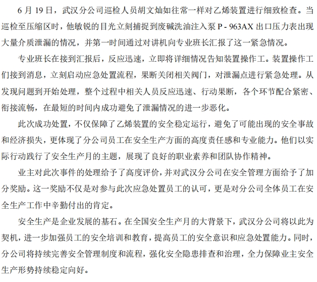 武漢分公司員工巡檢立功,獲業(yè)主安全加分獎(jiǎng)勵(lì)