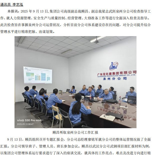 集團公司領(lǐng)導(dǎo)到泉州分公司檢查指導(dǎo)工作