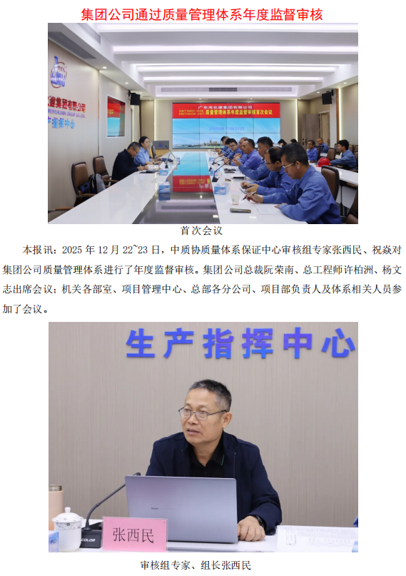 集團(tuán)公司通過質(zhì)量管理體系年度監(jiān)督審核